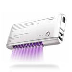POWER BANK TARGA UV-300PB 6000MAH Cargador portátil con Luz Germicida UV UltraVioleta Capacidad: 6000 mAh Entrada: DC 5V-2000mA (adaptador no incluido) Salida 1: DC 5V-1000mA Salida 2: DC 5V-2000mA (máx.) Dimensiones: 144 * 64 * 22 mm Peso: 210g Potencia UV: 3W Lugar aplicable: Lugares de áreas pequeñas como interior de r nautomóviles, armarios, zapateros, gabinetes, refrigeradores, etc.- MUY IMPORTANTE: Cuando la luz UV está encendida no la mire, evite las r nlesiones causadas por la radiación UV en los ojos y la piel por larga r nexposición. Evite que los niños toquen o jueguen, no lo coloque al alcance de r nellos. La comida debe almacenarse en un lugar sellado donde la luz no pueda r nalcanzar. ,