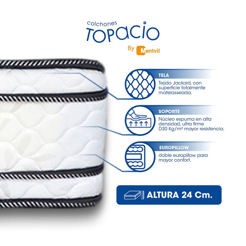 COLCHON TOPACIO ANTIGONA 0.80 x 1.90 x 24