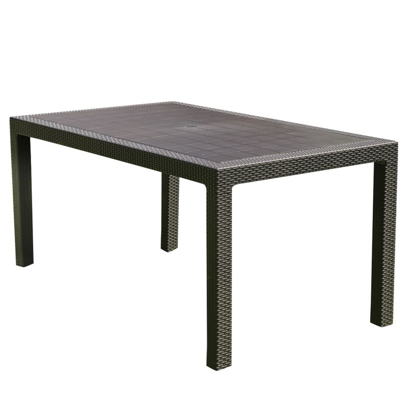 La mesa Indonesia con tapa de plástico posee una estructura simil rattán y está fabricada en polipropileno.