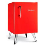 El frigobar Whirlpool Retro rojo rescata el diseño elegante de los años 50 con sus patas cromadas y un logo de época. Es compacto, pero tiene espacio para todo lo que precisás guardar y posee compartimentos modulares, rack para latas y congelador.