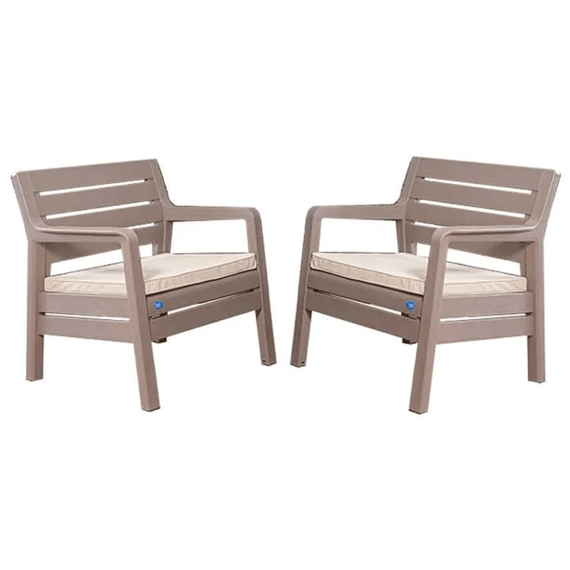 El complemento ideal para tu espacio. Ofrece un confort único. Contiene almohadones de tela impermeable y tanto los sillones como la mesa cuentan con tacos antideslizantes.