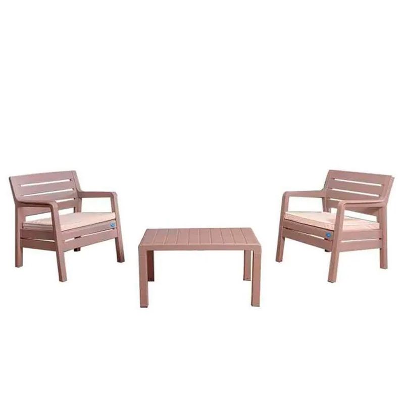 El complemento ideal para tu espacio. Ofrece un confort único. Contiene almohadones de tela impermeable y tanto los sillones como la mesa cuentan con tacos antideslizantes.