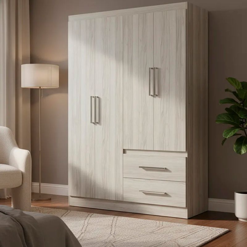 Organiza tu ropa, calzado y accesorios con estilo y practicidad con el Placard Máximo 4 Puertas 2 Cajones. Un mueble diseñado para quienes buscan gran capacidad de guardado, resistencia y un diseño moderno que se adapta a cualquier dormitorio.